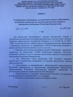 Студентка ординатуры, которая попросила не упоминать свое имя (есть в распоряжении редакции), сообщила, что телеграмма носит характер рекомендации, однако руководство БГМУ издало внутренний приказ, который обязует студентов проходить практику.