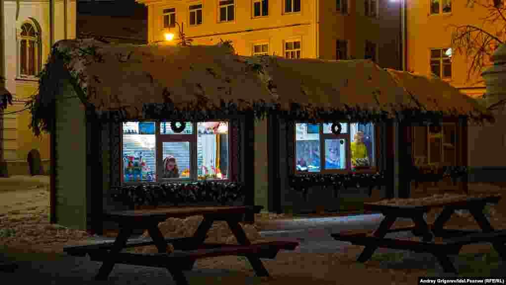 Выбивается из общего ряда ледовый городок в новом сквере у культурного центра Чулпан на проспекте Победы. Тут ставку сделали на фигуры из льда. Правда, облик некоторых персонажей оставляет желать лучшего. Например, Снегурочку казанцы уже начали сравнивать со знаменитой нововоронежской Алёнкой.