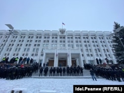 САМАРА. Полицейские выстроили оцепление вокруг входа в Белый дом.