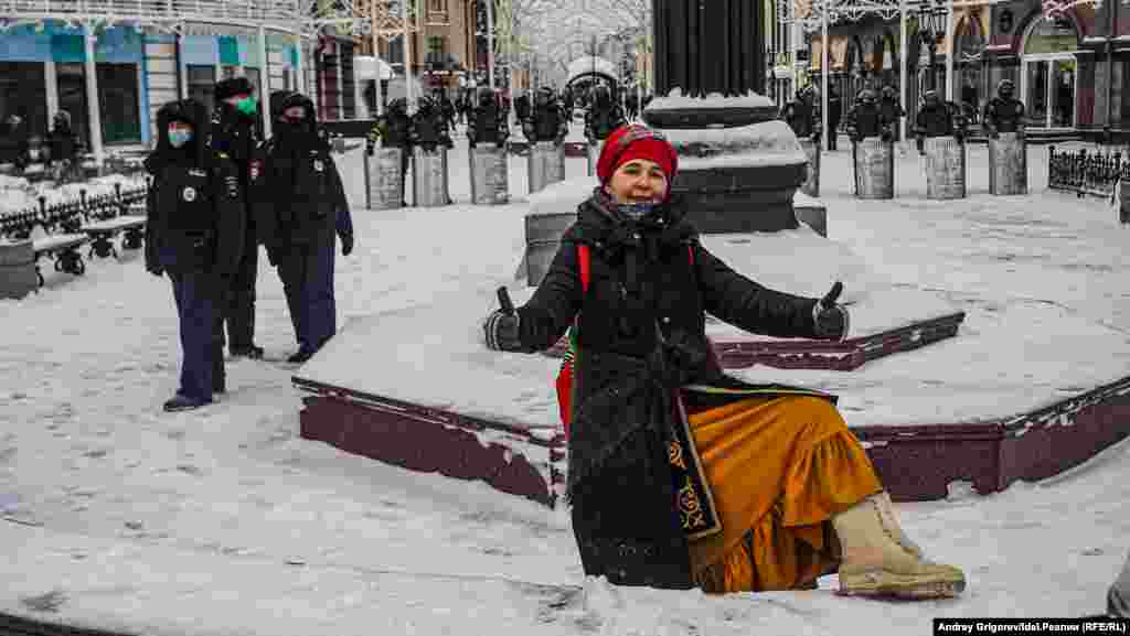 Изначально участники протеста в Казани планировали пройти по пешеходной улице Баумана от часов к кремлю — но это удалось далеко не всем. В два дня, 23 января, площадь с часами заняли полиция с росгвардией, а саму Баумана — перекрыли. Стихийно родилось предложение — идти на площадь Свободы, к Кабмину РТ. Такое отступление от планов, судя по всему, оказалось неожиданным для силовиков. Протестующие заняли площадь напротив дома правительства раньше, чем туда успели стянуть полицию с росгвардией.