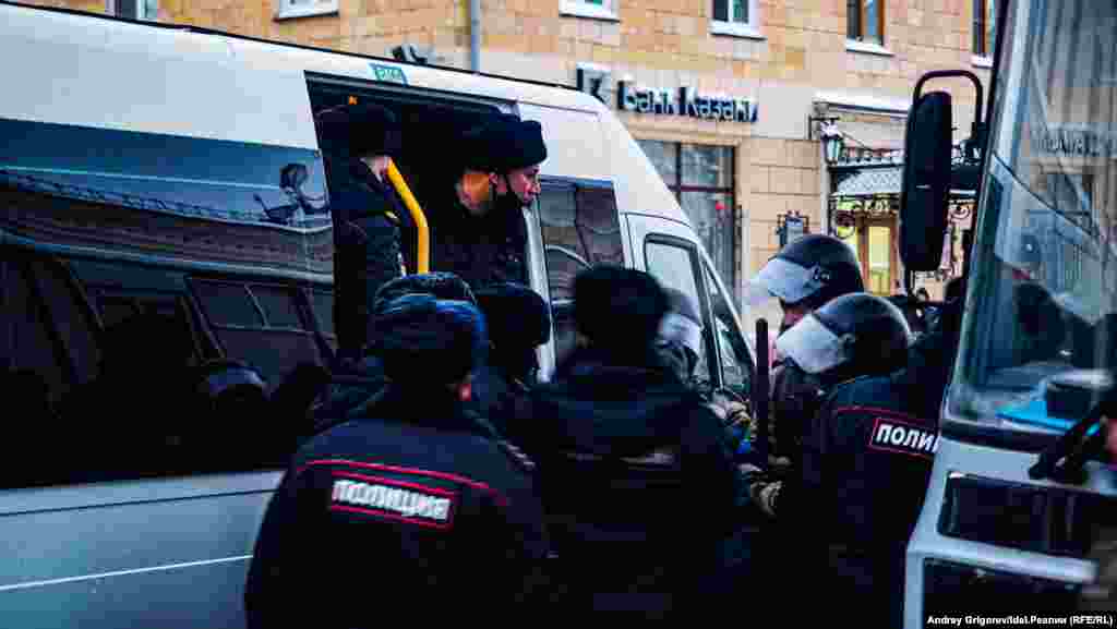 Затем протестующие всё же предприняли попытку дойти до Казанского кремля — через парк Чёрное озеро. На Чернышевского, уже на подъёме к Кремлёвской, они попали в ловушку: силовики перекрыли участок улицы с двух сторон, начались задержания. Многие из участников шествия были задержаны именно здесь. До кремля они так и не дошли.