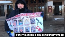 На площадь Свободы вышли Эндже и Алмаз Биктагировы, родители десятилетнего Армана Биктагирова из Казани. Эндже встала к Кабмину, а Алмаз к Госсовету (здания Кабмина и Госсовета в Татарстане представляют собой один комплекс, но со входами с противоположных сторон).