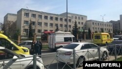 Около 20 машин "скорой помощи" дежурят о школы 175 в Казани. Наш корреспондент сообщает, что слышна стрельба.