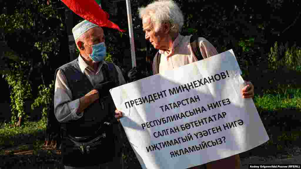 Участникам удалось согласовать митинг в центре города. На акцию в Ленинском садике собралось несколько десятков человек, в том числе — активисты Всетатарского общественного центра (ВТОЦ), ликвидации которого, как "экстремистской организации", добивается прокуратура РТ.