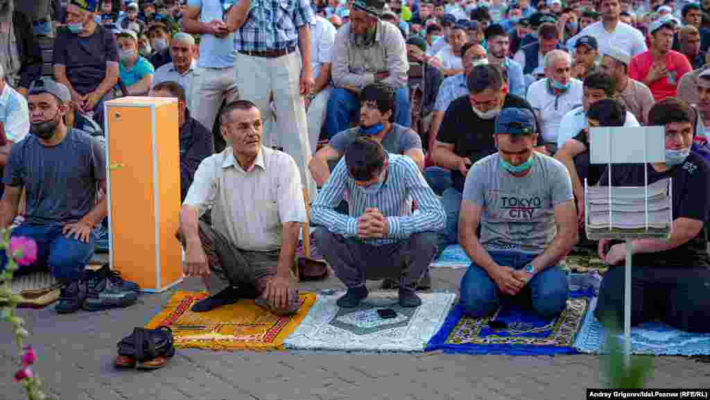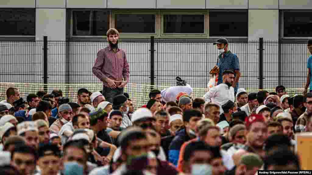Около тысячи человек собралось на праздничный намаз по случаю Курбан-байрама во дворе казанской мечети "Гаилә" в казанском микрорайоне Азино. Из-за жестких ограничений, продиктованных пандемией коронавируса COVID-19, само здание могло вместить лишь несколько сотен человек — по этой причине имам Рустем Хайруллин решил, что все без исключения пришедшие будут молиться во дворе мечети, чтобы между верующими не было искусственного разделения. Прочтя проповедь с крыльца, а потом спустился к остальным участникам молитвы.