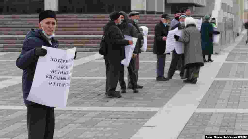 В этот раз активисты ВТОЦ решили не дожидаться даты и провели массовый пикет в защиту Хәтер көне у театра Камала. В акции участвовали полтора десятка человек.
