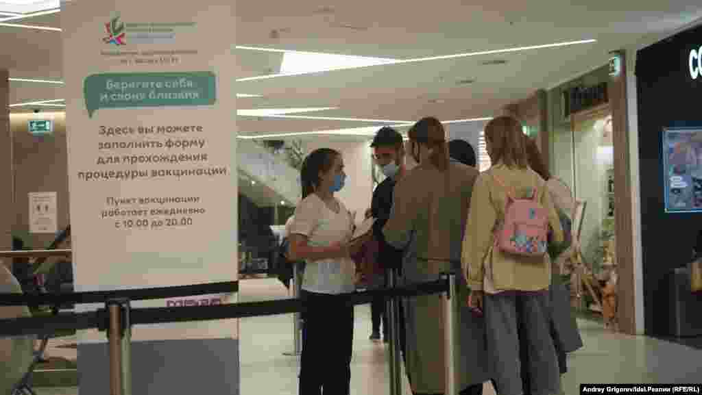 Внезапное решение правительства Татарстана ввести с 11 октября QR-пропуска на посещение ряда общественных мест, включая торговые центры, фитнес-центры и заведения общепита, спровоцировало очереди на вакцинацию в торговых центрах Казани. Первые сообщения о гигантских очередях появились в соцсетях ещё в пятницу, а в субботу, 9 октября, объехав ряд торговых центров столицы РТ, корреспондент "Idel.Реалии" лично убедился в их наличии.