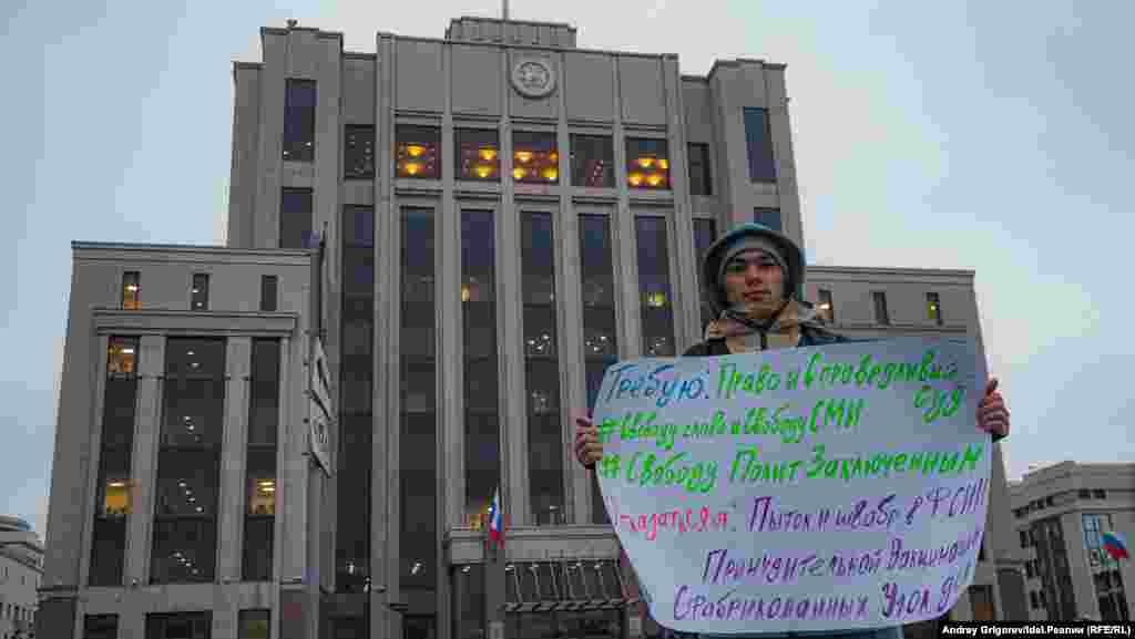 Казанский врач Артур Рахимуллин вышел на пикет к Кабмину Республики Татарстан. Он рассказал, что его уволили из-за отказа пройти вакцинации от Covid-19, но при этом главные его претензии не клинике, где он работал, а к системе. По его мнению, отсутствие свободы слова и подавление свободных СМИ способствуют тому, что прессуют в том числе и рядовых работников, не высказывающих никаких политических взглядов.