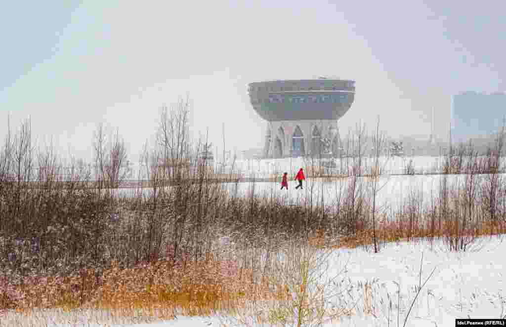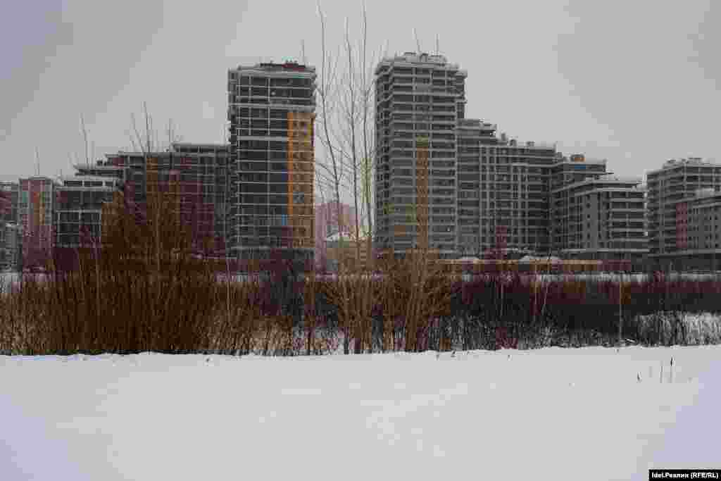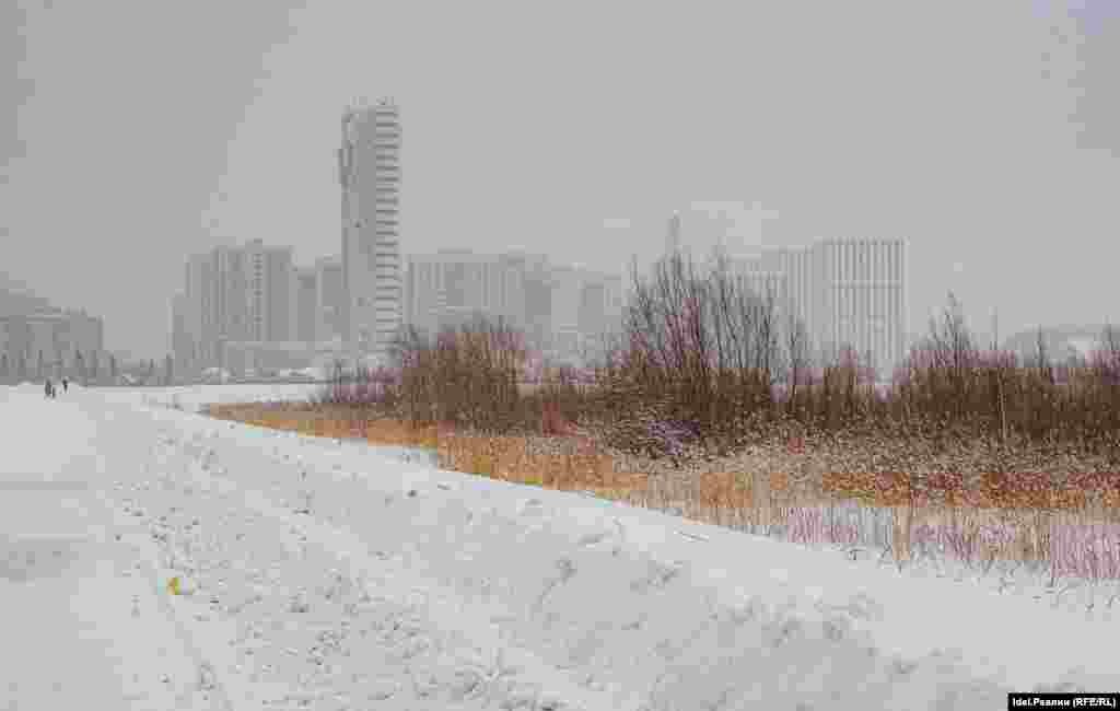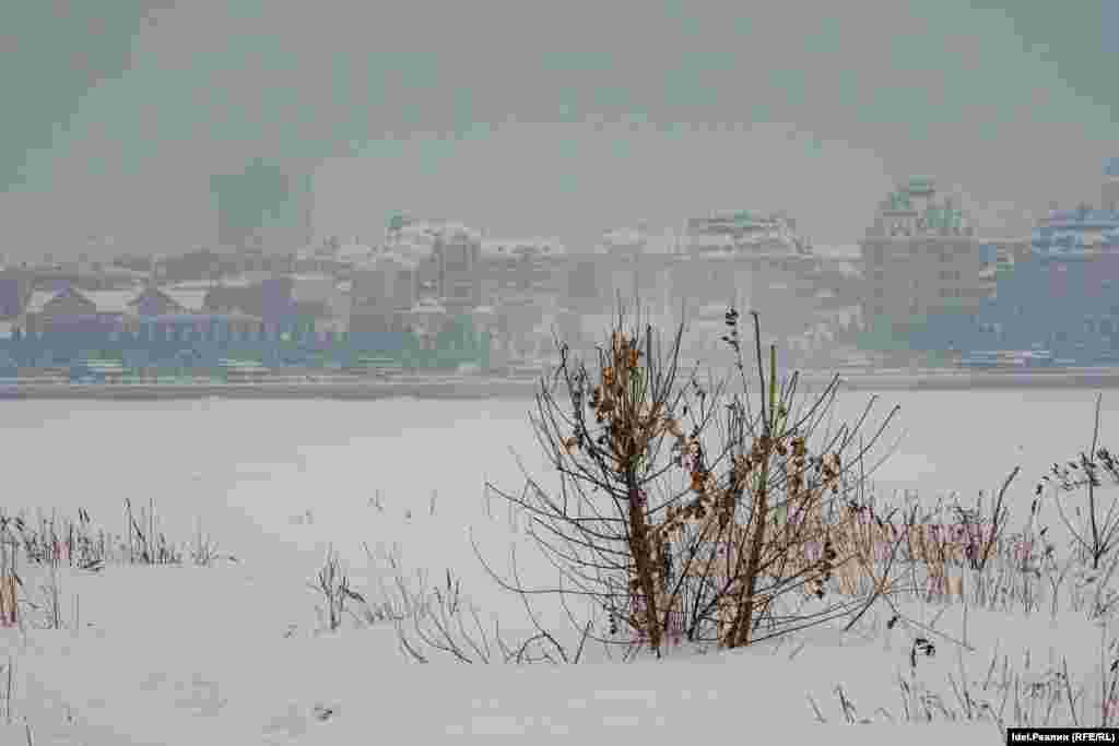 Эта намытая около десяти лет на Казанке назад территория, расположенная вдоль улицы Сибгата Хакима, давно уже превратилась для казанцев, живущих в многоэтажках поблизости, в своего рода парк дикой природы. Летом на песчаных барханах, которые сейчас скрыты снегом, загорают, осенью собирают облепиху с многочисленных кустов и кормят уток, плавающих в заливе, зимой катаются на лыжах и выгуливают собак.