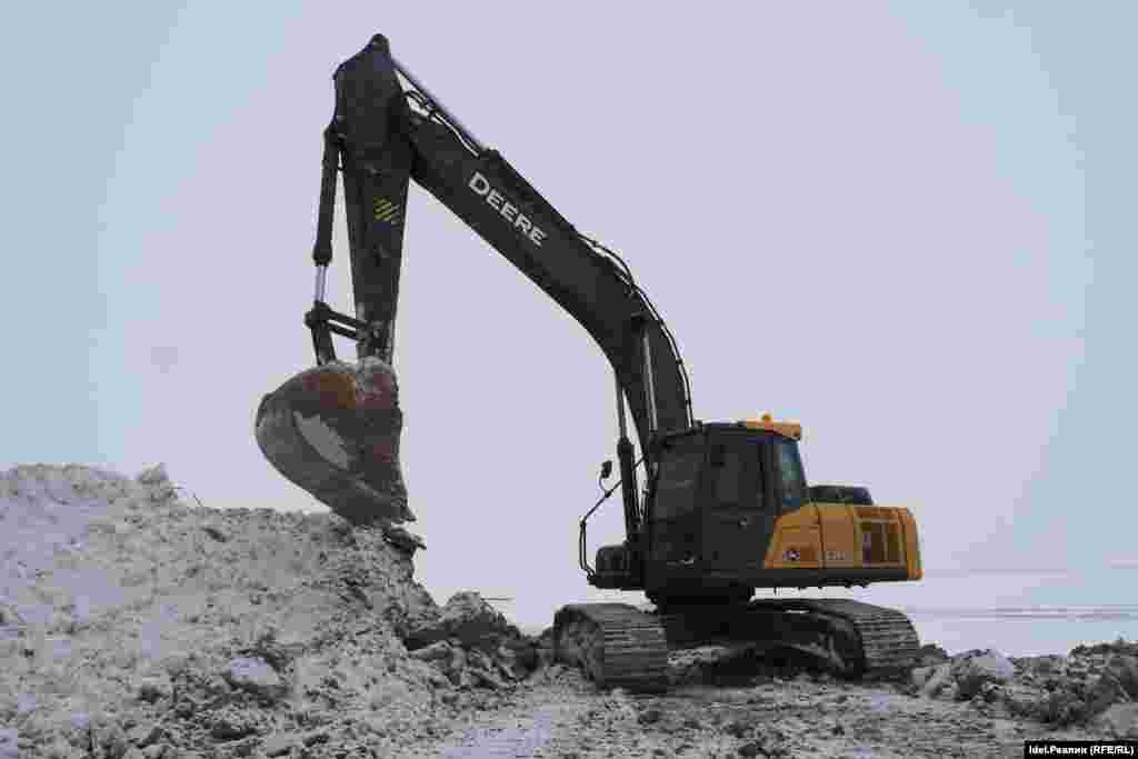 Как только появляются "чужаки", экскаваторы прекращают работу.