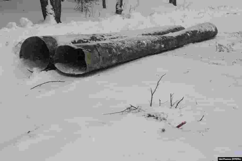Местами из грунта ещё торчат обрубленные стволы деревьев, росших на естественном берегу.