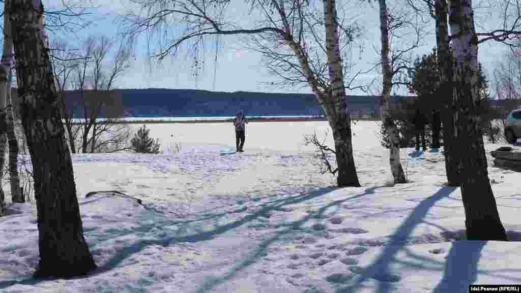 Это берег Волгу у казанского посёлка Куземетьево в 2021 году, до масштабной засыпки, которая происходит сейчас. На берегу многочисленные деревья и кустарники, пологий спуск к реке, дети играют в снежки и катаются с горки. Сейчас это место разительно изменилось и напоминает пустыню. От всего пляжа жителям Куземетьево остался кусочек метров в двадцать, да и тот, если верить предварительному проекту, скоро уничтожат.