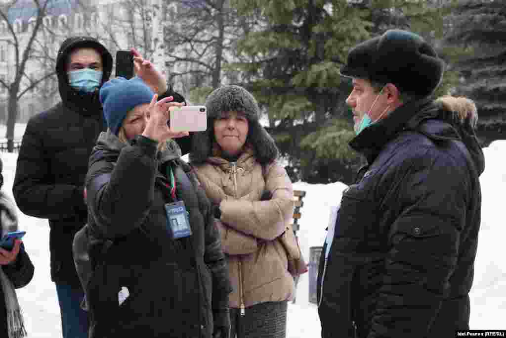 Позднее казанцы направились к памятнику жертвам политических репрессий в Ленинском садике. Около 15 человек возложили цветы. Глава татарстанского отделения партии "Яблоко" Руслан Зинатуллин удивлялся тому, что полицейские начали задерживать граждан у часов. Он вспомнил, как горожане после трагических событий несут цветы именно к этому месту. И задержаний ранее не было.