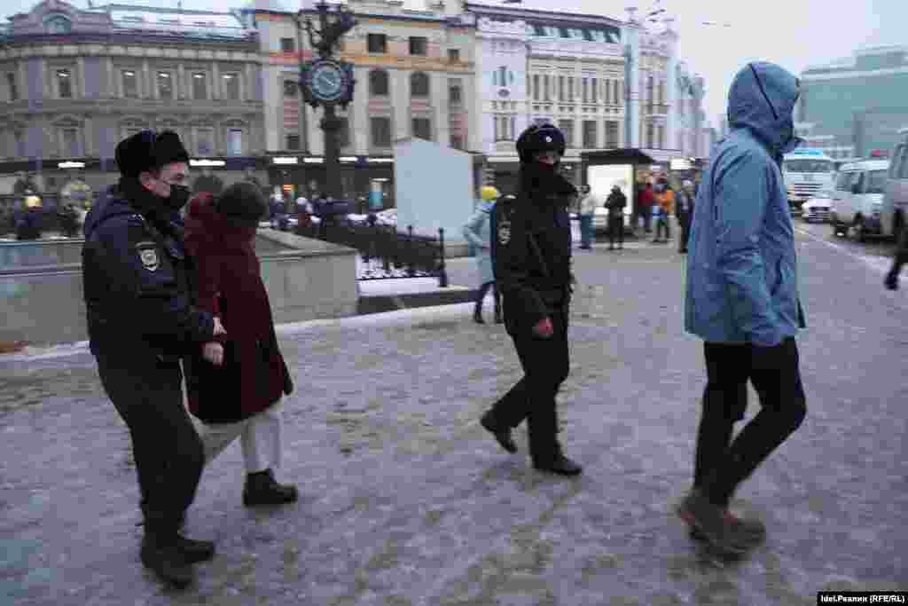Всего было задержано более 40 человек. Искандер Ясавеев рассказал "Idel.Реалии", что участников акции будут развозить по разным отделам полиции, поскольку ОП "Вишневский" не сможет вместить всех задержанных.