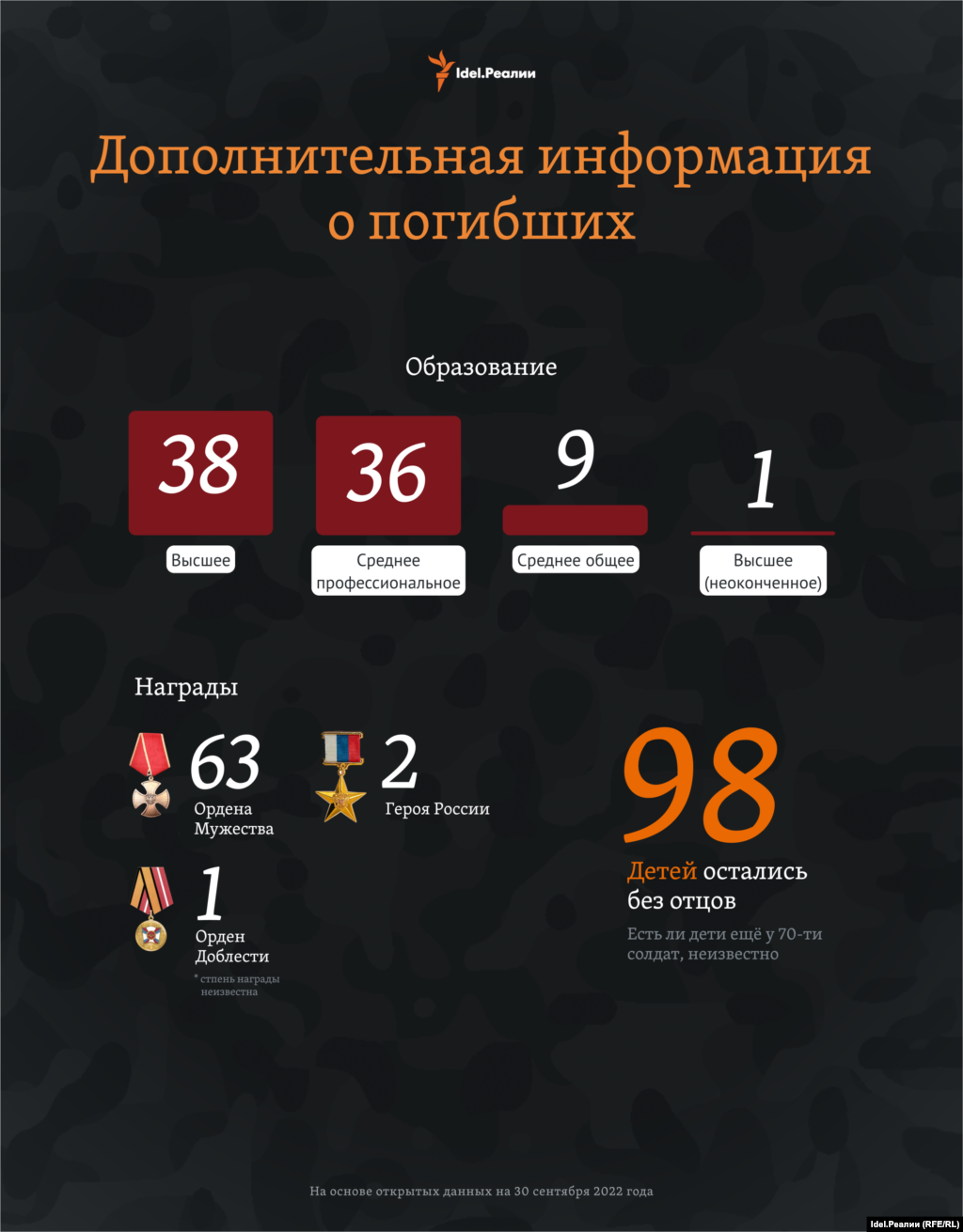 62,5% погибших на войне с Украиной татарстанцев были в возрасте от 20 до 34 лет
