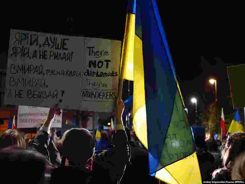 "Россия — террорист": польско-украинский митинг у посольства РФ в Варшаве