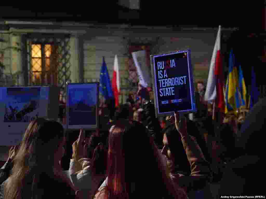 "Россия — террорист": польско-украинский митинг у посольства РФ в Варшаве
