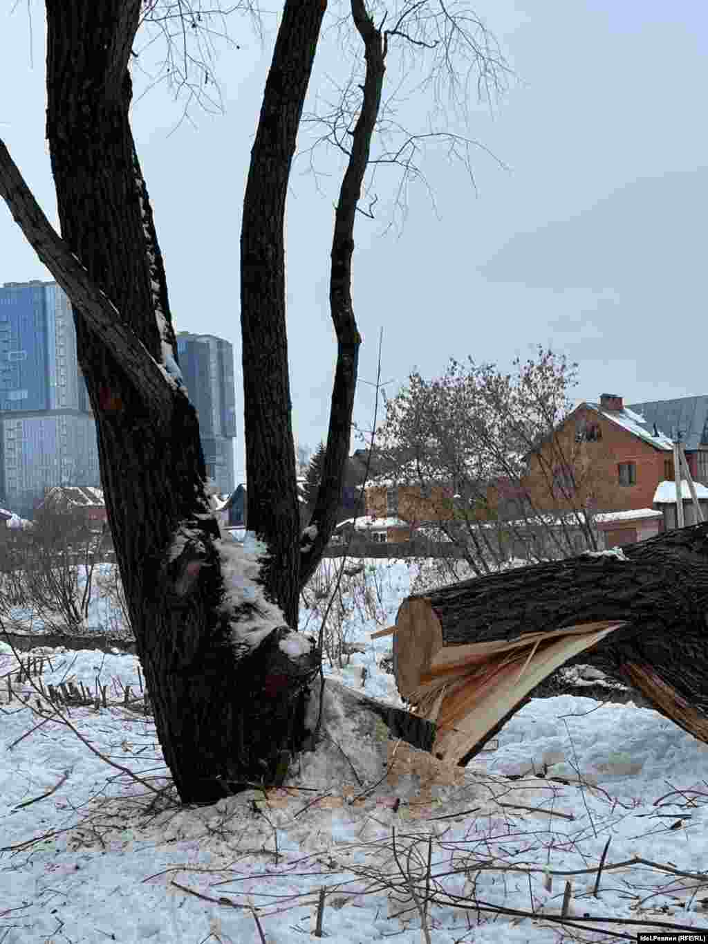 Самая масштабная вырубка состоялась здесь весной 2022 года, когда стало известно, что руководство Татарстана хочет видеть на месте парка Соборную мечеть Казани. Тогда в благоустроенной части парка было уничтожено несколько сотен взрослых деревьев. Сейчас работы перекинулись в "дикую" часть парка. Строительная техника уже двое расширила дренажную канаву. Причем ездят в топких местах, по наблюдениям местных жителей, прямо по стволам поваленных деревьев. Вот какими снимками поделись активисты, пытающиеся остановить работы.