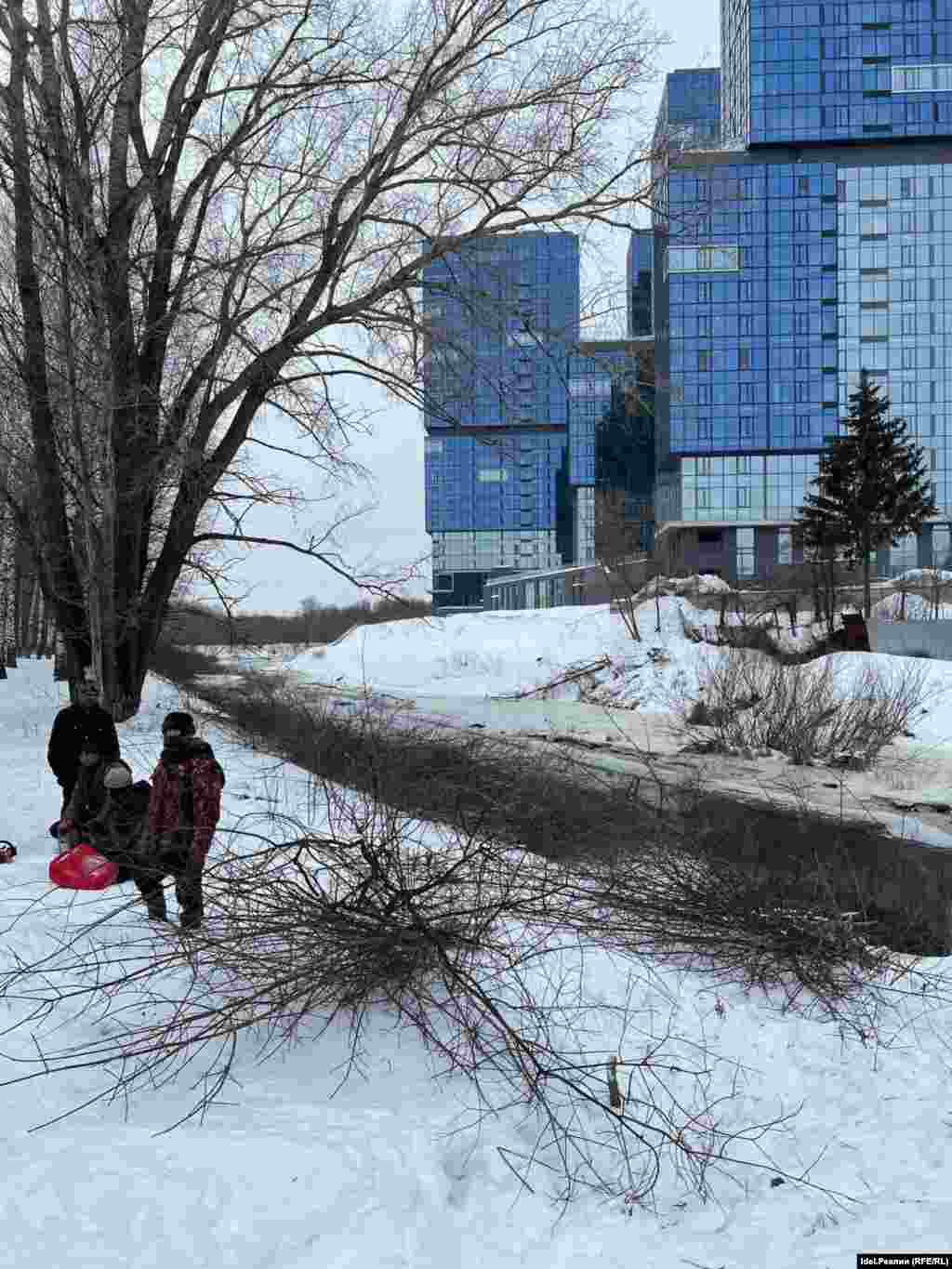 Самая масштабная вырубка состоялась здесь весной 2022 года, когда стало известно, что руководство Татарстана хочет видеть на месте парка Соборную мечеть Казани. Тогда в благоустроенной части парка было уничтожено несколько сотен взрослых деревьев. Сейчас работы перекинулись в "дикую" часть парка. Строительная техника уже двое расширила дренажную канаву. Причем ездят в топких местах, по наблюдениям местных жителей, прямо по стволам поваленных деревьев. Вот какими снимками поделись активисты, пытающиеся остановить работы.