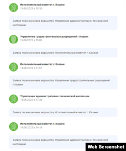 Ещё раньше жители города могли наблюдать, как исполком Казани и управление административно-технической инспекции (УАТИ) несколько дней перебрасывают эту жалобу между собой. Вот как это выглядело: