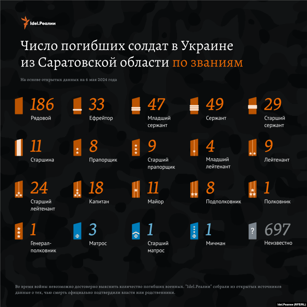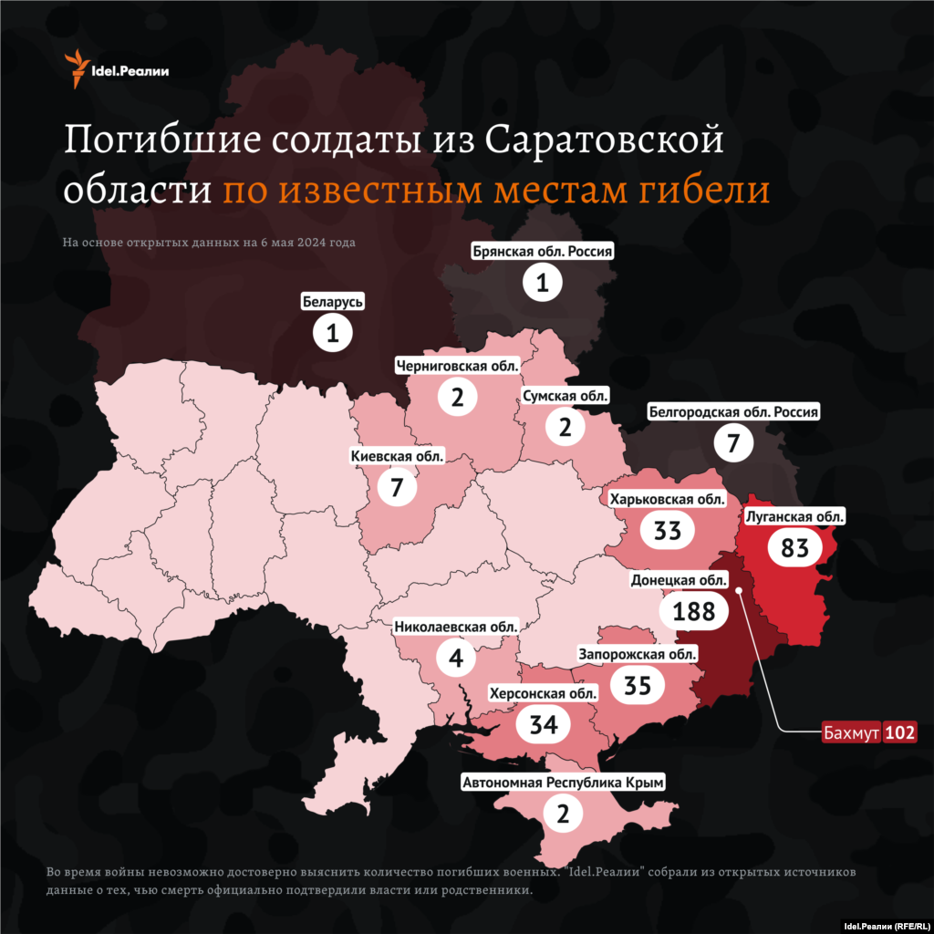 Прошло уже чуть более 800 дней войны в Украине. "Idel.Реалии" собрали всю известную на данный момент информацию о погибших на войне уроженцах Саратовской области — возраст, звания, районы, образование, дети, медали и др.