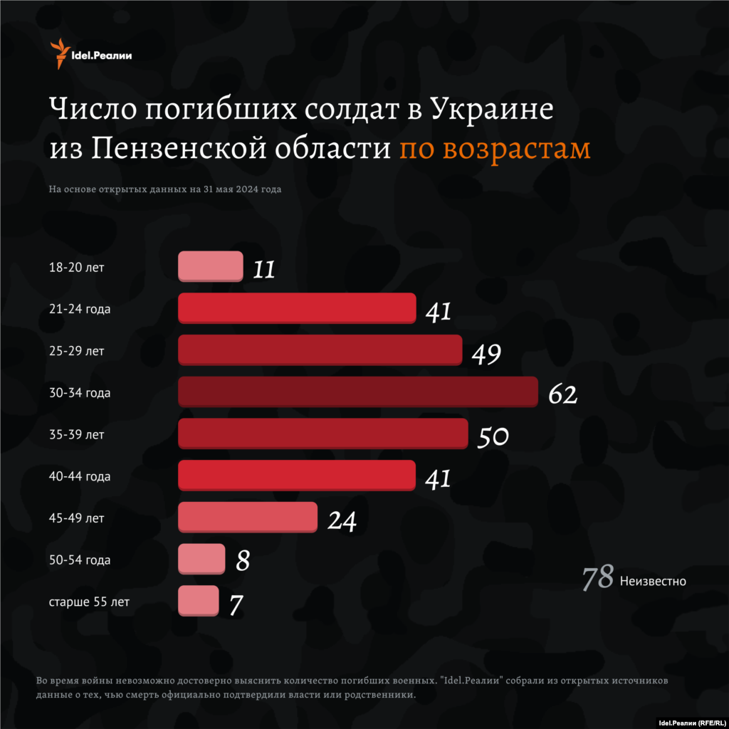 Как минимум 62 человека были в возрасте 30-34 лет. 106 детей военных из Пензенской области остались без отцов.