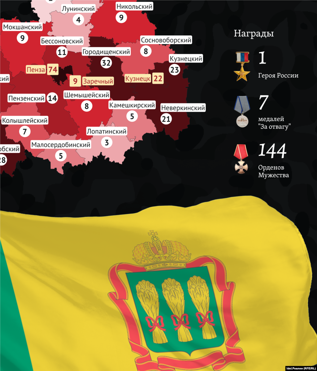 "Idel.Реалии" собрали всю известную на данный момент информацию о погибших на войне уроженцах Пензенской области — возраст, звания, районы, образование, дети, медали и др.