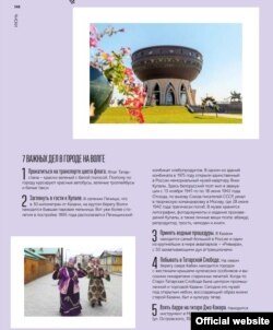 Помимо стандартного набора (Кремль, Баумана, чак-чак) ближневосточный авиаперевозчик рекомендует сходить в Татарский театр оперы и балета имени Мусы Джалиля, поплавать на лодке "по красивому и спокойному озеру вокруг Раифского Богородицкого монастыря", отправиться на экскурсию на корабле по Волге ("эта самая длинная река в Европе протекает через город"), заглянуть в Казанский университет ("там учились Толстой и Ленин") и отведать суп "шурпу".