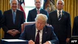 Президент США Дональд Трамп подписал закон о беспрецедентных мерах по спасению американской экономики от последствий кризиса, связанного с пандемией коронавируса.